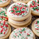 - Decorate Cookies: Allow the cookies to cool completely. Spread a small amount of melted white chocolate or vanilla almond bark on each cookie, then immediately sprinkle with holiday sprinkles. Let set for about 15 minutes before serving or storing.