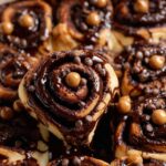 I usually keep it simple and top these rolls with a handful of chocolate shavings or some crunchy chocolate pearls for texture contrast. But sometimes, when feeling festive, I add chopped toasted hazelnuts or a tiny sprinkle of flaky sea salt to enhance the chocolate flavor.