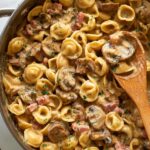 A rich and comforting French Onion Pasta combining caramelized onions, mushrooms, pancetta, and a creamy cheese sauce with layers of beef and chicken broth, white wine, and flavorful seasonings for a decadent and satisfying meal.