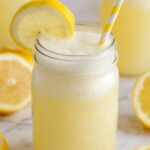 A refreshing Frozen Lemonade made with natural honey, creamy coconut milk, fresh lemon juice and zest, and a hint of vanilla and ginger. This easy-to-make frosty drink blends into a frothy, semi-slushy treat perfect for hot days.