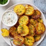 Pull them out, let them cool just a bit, then separate the potatoes with a spatula. Serve warm alongside that ranch dip for spooning or dunking. It finishes the dish with a cool, tangy contrast that’s so addictive.