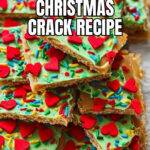 Grinch Christmas Crack is a festive and irresistible holiday treat featuring salty saltine crackers topped with a buttery brown sugar toffee, covered in vibrant green candy melts and colorful red and green sprinkles. Perfect for gifting or snacking during the holiday season.