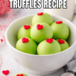 These festive Grinch Christmas Truffles are a delightful holiday treat featuring crushed Oreos mixed with cream cheese, dipped in green-tinted vanilla almond bark, and topped with red heart sprinkles. Perfect for holiday parties or gifting, these no-bake truffles are easy to make and sure to impress.