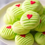 These Grinch Christmas Cream Cheese Mints are a festive and delicious holiday treat featuring a bright neon green color, creamy texture, and subtle peppermint flavor. Perfect for holiday parties or gifting, these easy-to-make mints combine cream cheese, butter, peppermint extract, and powdered sugar accented with red heart sprinkles for a charming finish.