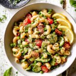 - Cook Pasta: Bring a large pot of salted water to a boil. Cook the pasta according to package directions until al dente. Reserve 1/2 cup of the pasta water, then drain the pasta and set aside.
