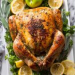 A classic Thanksgiving turkey recipe featuring a flavorful herb butter, aromatics stuffed inside the cavity, and a perfectly roasted bird with golden brown skin. This method ensures juicy breast meat and aromatic, tender turkey perfect for a holiday feast.