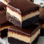 Deliciously rich and moist Irish Cream Frosted Brownies featuring a luscious Irish Cream frosting and a smooth ganache topping. Perfect for celebrations or indulgent treats with a chocolatey, boozy twist.