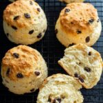 Deliciously tender and flaky Irish scones made with simple ingredients like all-purpose flour, cold butter, dried currants, eggs, and cream. These scones are perfect for breakfast or a teatime treat, baked to a golden brown and served with butter, jam, or clotted cream.