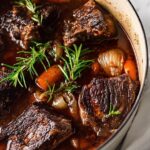 This classic Braised Short Ribs recipe features tender, flavorful beef slow-cooked in a rich sauce made with bacon, red wine, vegetables, and fresh herbs. The ribs are first seared to develop a deep crust, then simmered low and slow, resulting in melt-in-your-mouth meat perfect for serving over creamy mashed potatoes.