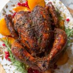 A flavorful and juicy Cajun Butter Thanksgiving Turkey recipe featuring a dry-brined bird coated in a homemade Cajun compound butter, roasted to perfection with aromatics and a beer-infused roasting pan for an extra layer of moisture and taste.