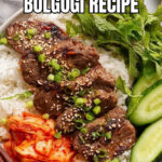 This Korean Beef Bulgogi recipe delivers tender, thinly sliced rib eye steak marinated in a deliciously savory and slightly sweet Korean BBQ sauce made with pear, soy sauce, and gochujang. The meat cooks quickly in a hot cast iron grill pan, creating a perfectly charred and flavorful dish ready in just over 3 hours including marinating time.