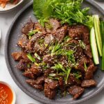 This Korean Beef Bulgogi recipe delivers tender, thinly sliced rib eye steak marinated in a deliciously savory and slightly sweet Korean BBQ sauce made with pear, soy sauce, and gochujang. The meat cooks quickly in a hot cast iron grill pan, creating a perfectly charred and flavorful dish ready in just over 3 hours including marinating time.