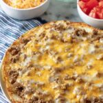 - Layer the bake: Place one flour tortilla at the bottom of the pan. Spread about one-third of the taco beef mixture evenly over the tortilla, then sprinkle with one-third of the shredded Mexican cheese blend. Repeat this layering process twice more: tortilla, beef mixture, and cheese.