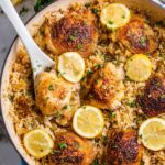 A flavorful and easy Lemon Chicken Rice Bake featuring marinated chicken thighs cooked with aromatic herbs, lemon juice, and tender rice all baked to perfection. This one-pan dish offers juicy chicken with crispy skin and perfectly cooked rice infused with bright lemon zest and fresh parsley.