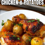 A simple and flavorful one pan chicken and potatoes recipe featuring tender chicken thighs and drumsticks roasted with garlic, lemon, oregano, and paprika. This wholesome meal is easy to prepare, with a zesty and savory sauce that infuses the chicken and potatoes, perfect for a comforting dinner.