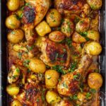 - Bake: Bake in the preheated oven at 400°F/200°C for 40 minutes or until the potatoes are tender and the chicken is fully cooked through (internal temperature should reach 165°F/74°C).