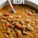A hearty and flavorful Lentil Sausage Soup made with ground sausage, brown lentils, vegetables, and a blend of seasonings. This comforting stew simmers to perfection, delivering a rich and savory meal perfect for chilly days.