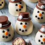 Melted Snowman Cookie Dough Bites are adorable and delicious no-bake treats that combine edible cookie dough, white chocolate ganache, and festive decorations to create fun snowman-shaped bites perfect for holiday celebrations or winter-themed parties.