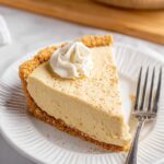 A creamy, festive No Bake Egg Nog Pie that combines the rich flavors of egg nog with vanilla pudding and spices, set in a graham cracker crust for a delightful holiday dessert.