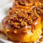 To keep the buns soft but warm, I reheat them in a 300°F oven for about 10 minutes, covered loosely with foil so the tops don’t scorch but the praline sauce gets melty again.