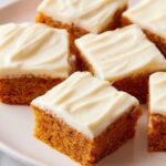 Delicious and moist pumpkin bars with a creamy cream cheese frosting, perfect for a seasonal treat or dessert.