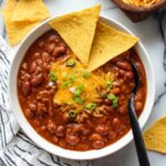 - Adjust seasoning and serve: After simmering, taste the chili and add additional salt if needed. Serve hot with your favorite toppings such as sour cream, shredded cheese, green onion, or corn chips.