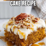 For special occasions, I’ve served this Pumpkin Poke Cake Recipe in individual mason jars layered with extra caramel and pecans on top — it looks adorable and makes portion control easier during family gatherings.