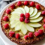 A delicious Raspberry Apple Pie featuring tart Granny Smith apples and sweet raspberries, topped with a buttery oatmeal cookie crumble. Baked to perfection in a brown sugar pecan graham cracker crust, this dessert combines fruity freshness with a comforting, crispy topping.