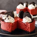 This festive Christmas Red Velvet Oreo Cheesecake combines the rich creaminess of classic cheesecake with the indulgent flavors of red velvet and crunchy Oreo crumbs. Perfect for holiday celebrations, this small-batch cheesecake features a luscious chocolate cookie crust, vibrant red food coloring, and a velvety texture that is complemented by a smooth whipped cream topping.