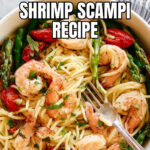 A quick and flavorful Sheet Pan Shrimp Scampi with roasted asparagus and cherry tomatoes, perfect served over linguine or your favorite side for an easy weeknight dinner.
