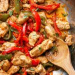 This classic Italian-inspired Chicken and Peppers recipe features tender boneless chicken thighs simmered with colorful bell peppers, garlic, plum tomatoes, and a splash of dry white wine. The dish is finished with fresh basil and is perfect served with crusty Italian bread to soak up the flavorful sauce.