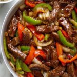 Pepper Steak is a flavorful and tender stir-fry dish featuring thinly sliced strip steak cooked with colorful bell peppers and onions in a savory sauce made from beef and chicken broth, soy sauce, honey, and spices. Served over perfectly cooked white rice, this recipe offers a satisfying dinner with an easy-to-follow preparation and a delicious blend of Asian-inspired flavors.