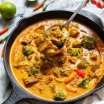 A flavorful Thai Beef Curry with tender sirloin, vibrant vegetables, and creamy coconut milk, perfect for a quick and satisfying dinner.