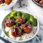- Serve: Plate the glazed meatballs over prepared jasmine rice, add steamed or roasted broccoli on the side, and garnish with sesame seeds. Enjoy your meal!