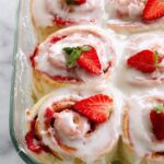 - Serve: Spread the frosting over the warm rolls and optionally garnish with fresh strawberry slices. Serve warm and enjoy.