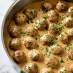 This classic Swedish Meatball recipe features tender meatballs made from a blend of ground beef and pork, seasoned with warm spices and Parmesan, then simmered in a rich, creamy sauce made from butter, flour, beef broth, and sour cream. Perfectly browned and simmered to perfection, these meatballs are ideal served over mashed potatoes or egg noodles for a comforting, hearty meal.