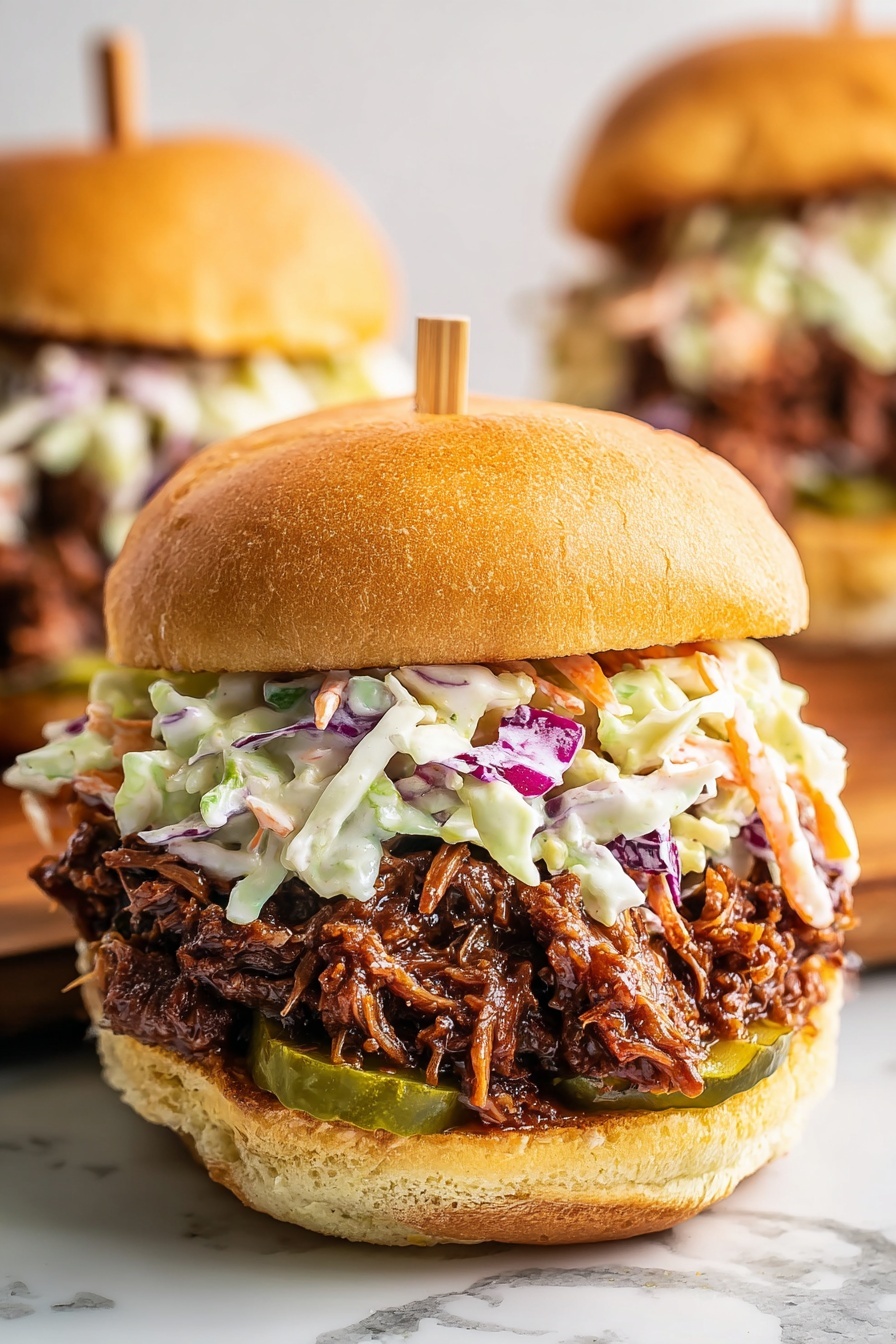 I’ve made these sandwiches on busy weeknights when I want something hearty without fuss, and they never disappoint. The balance of tender beef, tangy sauce, and crunchy slaw hits every craving spot.