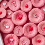 Valentine’s Day Cookie Cups are delightful bite-sized treats featuring a soft, chewy, buttery sugar cookie base wrapped around a sweet Hershey’s hug center. Perfect for sharing love and sweetness, these festive cookie cups are easy to make and beautifully decorated with sprinkles.