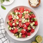 A refreshing and vibrant Watermelon Salad featuring sweet cubed watermelon, crisp English cucumber, fresh mint, and tangy crumbled feta cheese, dressed with a zesty lime and olive oil dressing. Perfect as a light side dish for summer meals.